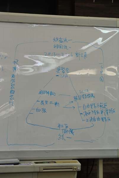 此時,另一名高階警官走過來,拿著麥克風說「你同不同意接受盤查?」我不願意。同時,其他的警察都先鬆手,接著有路人又繼續質疑警察無權盤查,高階警官說「這裡是集會遊行禁制區,這裡是特殊管制區,根據特殊勤務條例….」警察跟路人一來一往對話時,頭昏腦脹的我坐在地上,聽到拿麥克風的高階警官說「讓他在這邊就好了」,我坐在地上喘口氣,摸摸疼痛的身體,幾秒鐘後,不曉得為什麼,警察又圍過來拖我上警車,警車鳴笛,一路混亂地把我帶到公園路的派出所。