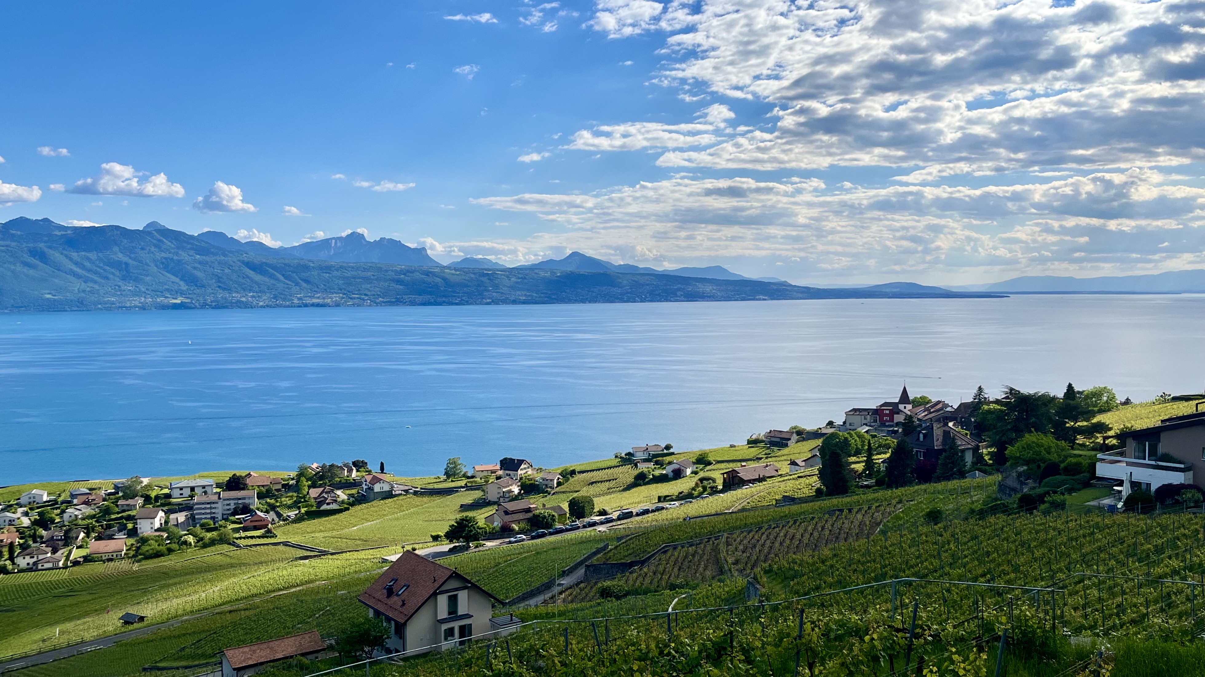 上圖:雷夢湖(日內瓦湖)與葡萄園。瑞士美麗潔淨,是一個注重環保的國家。油價「高貴」,乘坐公共交通工具,徒步和騎自行車是重點。為歐洲細塵濃度最低的國家之一。自