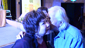 座談會進行到一半時,黃越綏老師現身來獻花給史明歐吉桑,黃越綏老師稱歐吉桑為史明兄,她告訴歐吉桑一定要健健康康至少活到100歲,到時她還要再獻花給 歐吉桑。在眾人鼓譟下原本要黃老師獻吻,結果反成了歐吉桑獻吻,場面溫馨歡樂也讓人看到歐吉桑可愛幽默的一面。